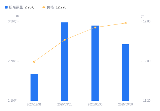近一年(2024年9月30日至2025年9月30日),科信技术A股股东户数从2.78万户,增加至2.96万户,增幅6.45%,区间股价上涨10.18%。