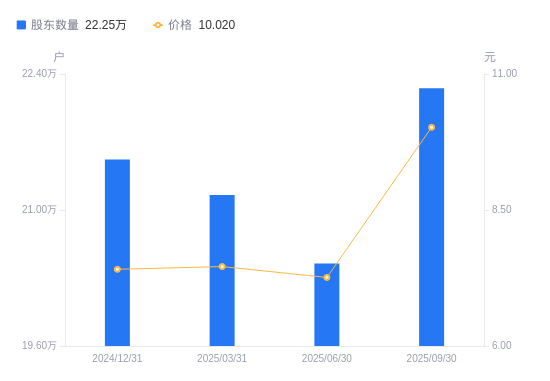 近一年(2024年9月30日至2025年9月30日),江特电机A股股东户数从22.91万户,减低至22.25万户,降幅2.89%,区间股价上涨28.13%。