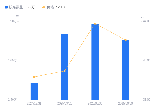近一年(2024年9月30日至2025年9月30日),中亦科技A股股东户数从1.64万户,增加至1.78万户,增幅8.42%,区间股价上涨28.35%。
