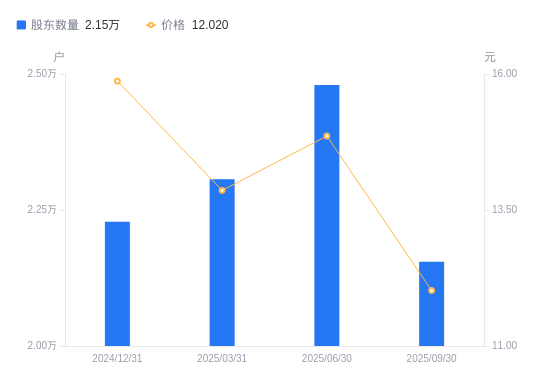 近一年(2024年9月30日至2025年9月30日),蠡湖股份A股股东户数从1.48万户,增加至2.15万户,增幅45.68%,区间股价上涨41.91%。