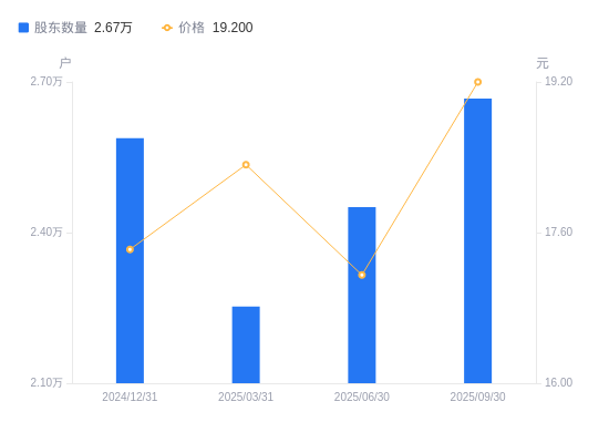 10月23日消息,数据显示,截至2025年9月30日,迪普科技A股股东总户数为2.67万户,较上期(2025年6月30日)增加2161户,增幅8.82%。公司最新A股总股本为6.44亿股,其中流通A股4.21亿股,户均持有流通A股数量为1.58万股,较上期减少1390.96股,降幅8.10%;户均持流通A股市值30.29万元,较上期增加8482.32元,增幅2.88%。