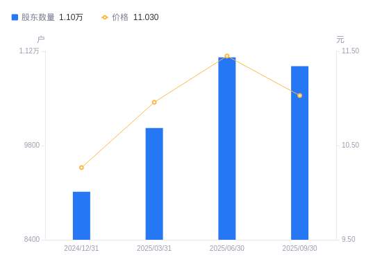 近一年(2024年9月30日至2025年9月30日),三友联众A股股东户数从1.28万户,减低至1.1万户,降幅14.30%,区间股价上涨39.09%。