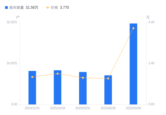近一年(2024年9月30日至2025年9月30日),吉视传媒A股股东户数从9.27万户,增加至31.56万户,增幅240.38%,区间股价上涨173.19%。