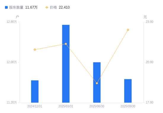 近一年(2024年9月30日至2025年9月30日),拓尔思A股股东户数从9.29万户,增加至11.67万户,增幅25.51%,区间股价上涨60.99%。