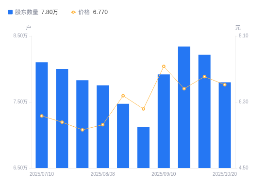 10月23日消息,数据显示,截至2025年10月20日,宝馨科技A股股东总户数为7.8万户,较上期(2025年10月10日)减少4168户,降幅5.07%。公司最新A股总股本为7.2亿股,其中流通A股5.54亿股,户均持有流通A股数量为7105.1股,较上期增加360.51股,增幅5.35%;户均持流通A股市值4.81万元,较上期增加956.84元,增幅2.03%。