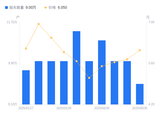 近一年(2024年9月30日至2025年9月30日),捷成股份A股股东户数从9.33万户,减低至9万户,降幅3.56%,区间股价上涨28.59%。