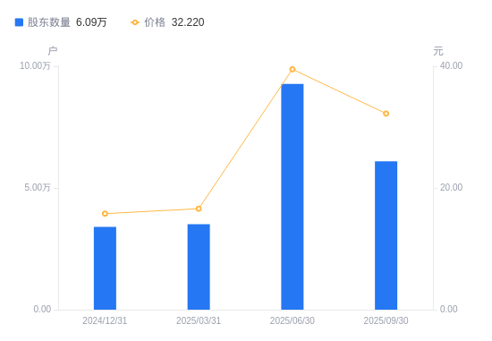 近一年(2024年9月30日至2025年9月30日),金龙羽A股股东户数从3.75万户,增加至6.09万户,增幅62.51%,区间股价上涨119.63%。