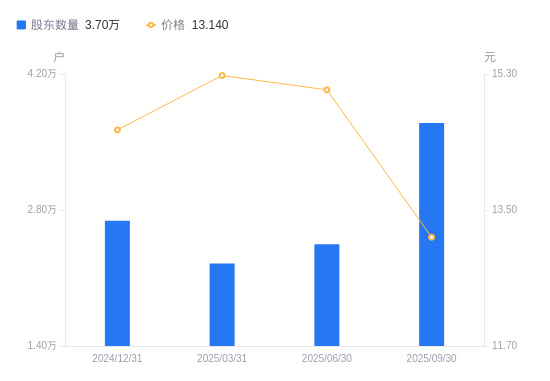 近一年(2024年9月30日至2025年9月30日),南方传媒A股股东户数从2.98万户,增加至3.7万户,增幅23.88%,区间股价上涨0.46%。
