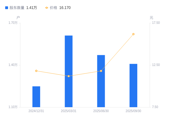 近一年(2024年9月30日至2025年9月30日),佳发教育A股股东户数从1.77万户,减低至1.41万户,降幅20.58%,区间股价上涨78.48%。