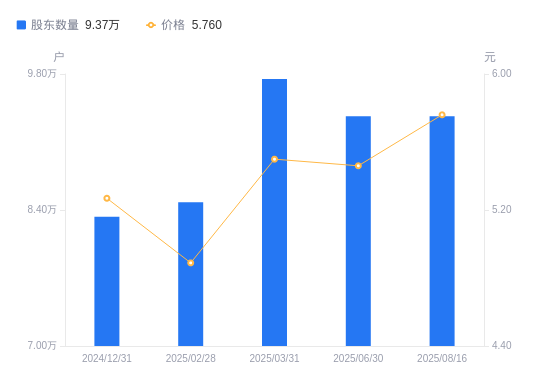 10月24日消息,数据显示,截至2025年9月30日,海油工程A股股东总户数为7.89万户,较上期(2025年8月16日)减少1.48万户,降幅15.77%。公司最新A股总股本为44.21亿股,其中流通A股44.21亿股,户均持有流通A股数量为5.6万股,较上期增加8836.93股,增幅18.72%;户均持流通A股市值29.71万元,较上期增加2.51万元,增幅9.24%。