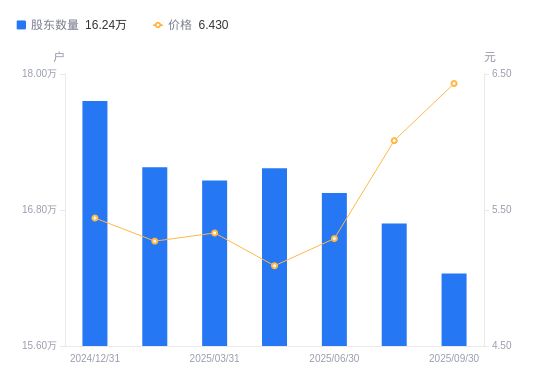 近一年(2024年9月30日至2025年9月30日),驰宏锌锗A股股东户数从16.21万户,增加至16.24万户,增幅0.18%,区间股价上涨23.87%。
