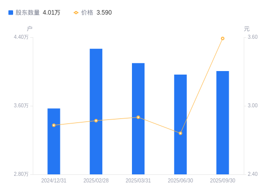 近一年(2024年9月30日至2025年9月30日),安通控股A股股东户数从3.28万户,增加至4.01万户,增幅22.32%,区间股价上涨50.21%。