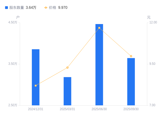 近一年(2024年9月30日至2025年9月30日),捷顺科技A股股东户数从3.78万户,减低至3.64万户,降幅3.55%,区间股价上涨31.53%。