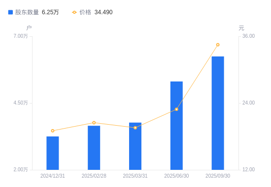 近一年(2024年9月30日至2025年9月30日),赢合科技A股股东户数从3.77万户,增加至6.25万户,增幅65.76%,区间股价上涨102.11%。