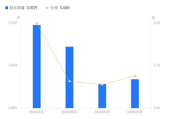 近一年(2024年9月30日至2025年9月30日),重庆燃气A股股东户数从3.12万户,减低至3万户,降幅3.87%,区间股价上涨1.35%。