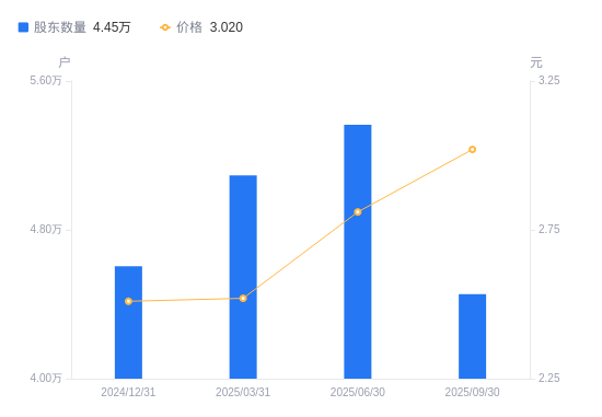 10月24日消息,数据显示,截至2025年9月30日,惠博普A股股东总户数为4.45万户,较上期(2025年6月30日)减少9111户,降幅16.98%。公司最新A股总股本为13.34亿股,其中流通A股13.33亿股,户均持有流通A股数量为2.99万股,较上期增加5084.19股,增幅20.46%;户均持流通A股市值9.04万元,较上期增加2.06万元,增幅29.46%。