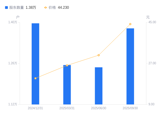 近一年(2024年9月30日至2025年9月30日),纽威股份A股股东户数从1.35万户,增加至1.38万户,增幅2.06%,区间股价上涨153.61%。