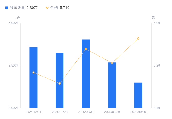 近一年(2024年9月30日至2025年9月30日),常宝股份A股股东户数从2.62万户,减低至2.3万户,降幅12.26%,区间股价上涨17.68%。