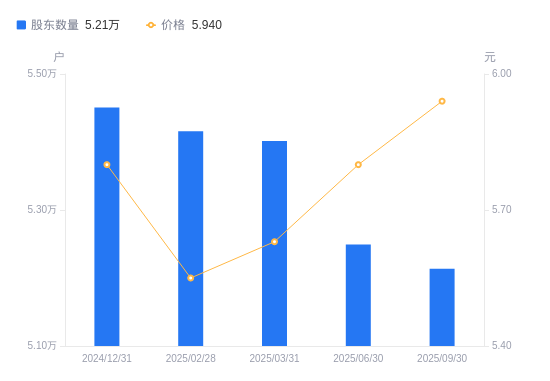 近一年(2024年9月30日至2025年9月30日),创业环保A股股东户数从5.63万户,减低至5.21万户,降幅7.46%,区间股价上涨12.08%。