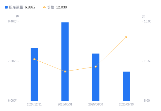 近一年(2024年9月30日至2025年9月30日),东方电子A股股东户数从6.5万户,增加至6.88万户,增幅5.84%,区间股价上涨9.85%。