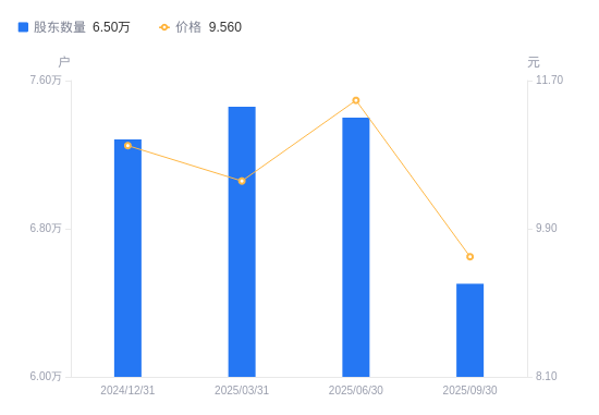 近一年(2024年9月30日至2025年9月30日),中海达A股股东户数从6.47万户,增加至6.5万户,增幅0.46%,区间股价上涨11.55%。