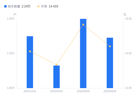 近一年(2024年9月30日至2025年9月30日),全信股份A股股东户数从2.4万户,减低至2.24万户,降幅6.78%,区间股价上涨21.08%。