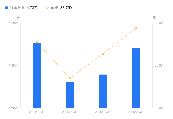 近一年(2024年9月30日至2025年9月30日),富满微A股股东户数从4.32万户,增加至4.73万户,增幅9.62%,区间股价上涨29.04%。