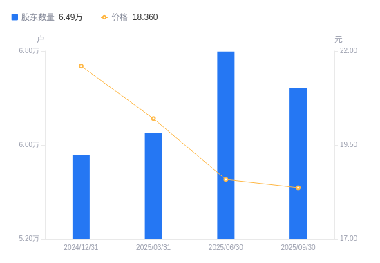 10月24日消息,数据显示,截至2025年9月30日,中炬高新A股股东总户数为6.49万户,较上期(2025年6月30日)减少3085户,降幅4.54%。公司最新A股总股本为7.79亿股,其中流通A股7.71亿股,户均持有流通A股数量为1.19万股,较上期增加539.54股,增幅4.76%;户均持流通A股市值21.82万元,较上期增加7387.29元,增幅3.50%。