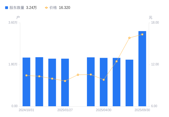 近一年(2024年9月30日至2025年9月30日),飞亚达A股股东户数从2.16万户,增加至3.24万户,增幅50.28%,区间股价上涨74.92%。
