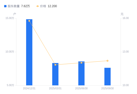 10月24日消息,数据显示,截至2025年9月30日,爱施德A股股东总户数为7.62万户,较上期(2025年6月30日)减少9510户,降幅11.10%。公司最新A股总股本为12.39亿股,其中流通A股12.24亿股,户均持有流通A股数量为1.61万股,较上期增加1783.95股,增幅12.49%;户均持流通A股市值19.61万元,较上期增加2.43万元,增幅14.17%。