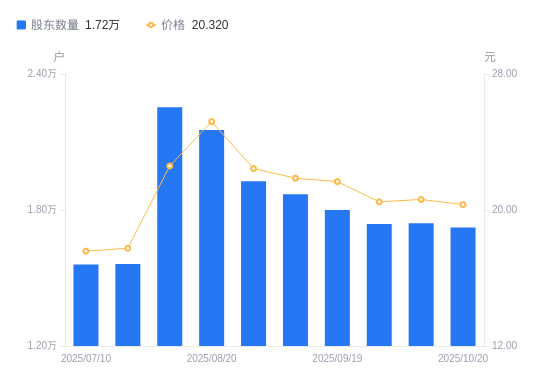近一年(2024年10月31日至2025年10月20日),冠龙节能A股股东户数从1.7万户,增加至1.72万户,增幅1.17%,区间股价上涨30.68%。