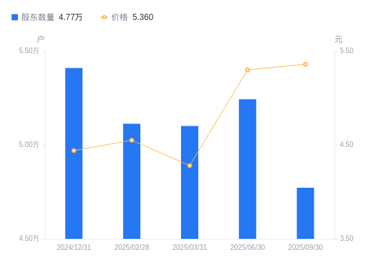 近一年(2024年9月30日至2025年9月30日),青岛双星A股股东户数从4.99万户,减低至4.77万户,降幅4.43%,区间股价上涨29.16%。