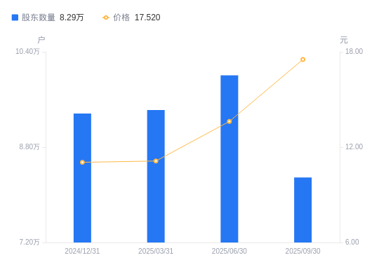 10月24日消息,数据显示,截至2025年9月30日,乐普医疗A股股东总户数为8.29万户,较上期(2025年6月30日)减少1.71万户,降幅17.13%。公司最新A股总股本为18.81亿股,其中流通A股16.16亿股,户均持有流通A股数量为1.95万股,较上期增加3338.23股,增幅20.67%;户均持流通A股市值34.15万元,较上期增加12.15万元,增幅55.22%。
