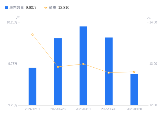 近一年(2024年9月30日至2025年9月30日),涪陵榨菜A股股东户数从10.02万户,减低至9.63万户,降幅3.95%,区间股价下跌8.17%。