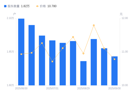 10月24日消息,数据显示,截至2025年9月10日,瑞丰高材A股股东总户数为1.95万户,较上期(2025年8月29日)增加1643户,增幅9.23%。公司最新A股总股本为2.5亿股,其中流通A股1.95亿股,户均持有流通A股数量为1万股,较上期减少922.73股,降幅8.45%;户均持流通A股市值11.79万元,较上期减少1703.36元,降幅1.42%。