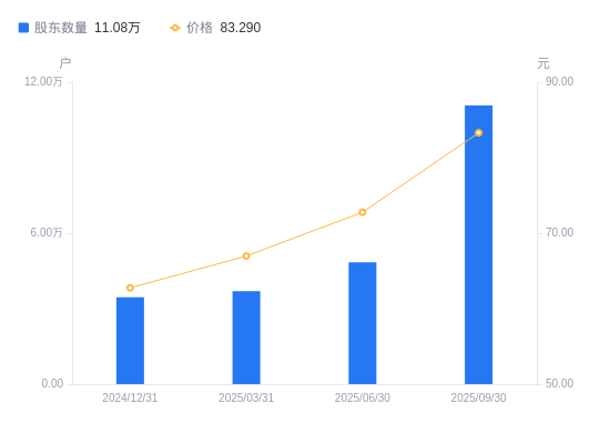 近一年(2024年9月30日至2025年9月30日),圣邦股份A股股东户数从1.97万户,增加至11.08万户,增幅461.16%,区间股价上涨35.51%。