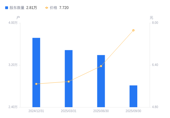 10月24日消息,数据显示,截至2025年9月30日,金洲管道A股股东总户数为2.81万户,较上期(2025年6月30日)减少5763户,降幅17.01%。公司最新A股总股本为5.21亿股,其中流通A股5.19亿股,户均持有流通A股数量为1.85万股,较上期增加3140.35股,增幅20.49%;户均持流通A股市值14.26万元,较上期增加4.51万元,增幅46.25%。