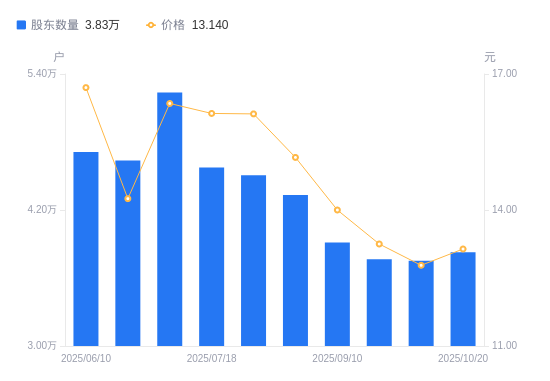 10月24日消息,数据显示,截至2025年9月30日,哈三联A股股东总户数为3.75万户,较上期(2025年9月19日)减少134户,降幅0.36%。公司最新A股总股本为3.16亿股,其中流通A股1.73亿股,户均持有流通A股数量为4612.15股,较上期增加16.41股,增幅0.36%;户均持流通A股市值5.89万元,较上期减少1950.27元,降幅3.20%。