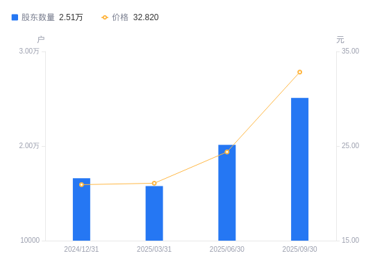 近一年(2024年9月30日至2025年9月30日),久吾高科A股股东户数从1.69万户,增加至2.51万户,增幅48.19%,区间股价上涨76.64%。