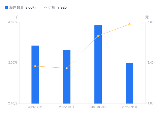 近一年(2024年9月30日至2025年9月30日),奥克股份A股股东户数从3.19万户,减低至3万户,降幅6.01%,区间股价上涨46.40%。