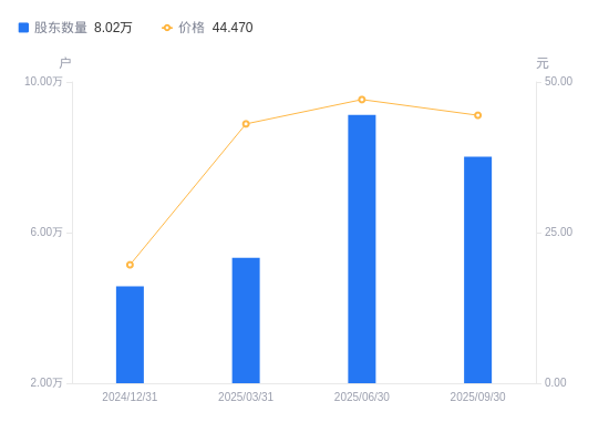 10月26日消息,数据显示,截至2025年9月30日,双林股份A股股东总户数为8.02万户,较上期(2025年6月30日)减少1.11万户,降幅12.17%。公司最新A股总股本为5.72亿股,其中流通A股5.52亿股,户均持有流通A股数量为6884.07股,较上期增加891.68股,增幅14.88%;户均持流通A股市值30.61万元,较上期增加2.4万元,增幅8.51%。