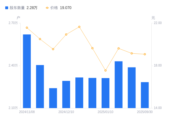 近一年(2024年9月30日至2025年9月30日),联合光电A股股东户数从1.84万户,增加至2.28万户,增幅24.15%,区间股价上涨11.07%。