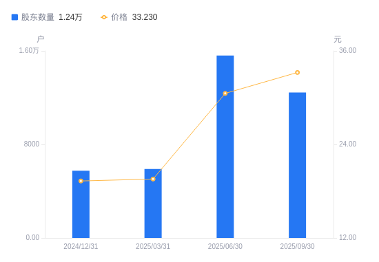 近一年(2024年9月30日至2025年9月30日),鑫磊股份A股股东户数从6503户,增加至1.24万户,增幅91.37%,区间股价上涨104.90%。