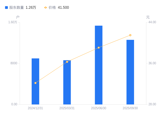10月26日消息,数据显示,截至2025年9月30日,信德新材A股股东总户数为1.26万户,较上期(2025年6月30日)减少2768户,降幅18.03%。公司最新A股总股本为1.02亿股,其中流通A股4890.73万股,户均持有流通A股数量为3887.09股,较上期增加1141.86股,增幅41.59%;户均持流通A股市值16.13万元,较上期增加5.41万元,增幅50.40%。