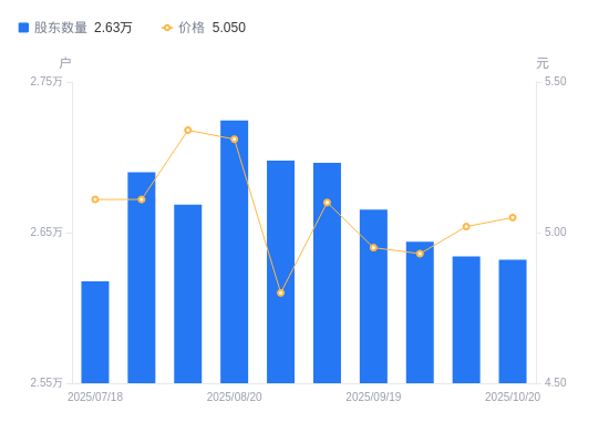近一年(2024年9月30日至2025年9月30日),华斯股份A股股东户数从2.93万户,减低至2.64万户,降幅9.76%,区间股价上涨46.73%。
