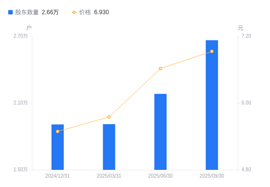 近一年(2024年9月30日至2025年9月30日),温州宏丰A股股东户数从2.31万户,增加至2.66万户,增幅15.34%,区间股价上涨35.62%。