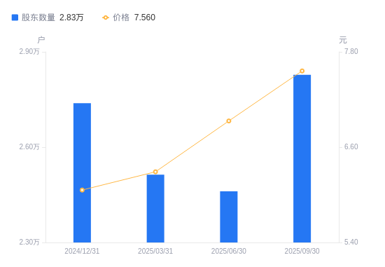 10月26日消息,数据显示,截至2025年9月30日,和晶科技A股股东总户数为2.83万户,较上期(2025年6月30日)增加3672户,增幅14.92%。公司最新A股总股本为4.89亿股,其中流通A股4.63亿股,户均持有流通A股数量为1.64万股,较上期减少2441.28股,降幅12.98%;户均持流通A股市值12.37万元,较上期减少6611.09元,降幅5.07%。