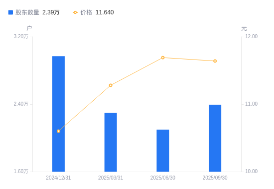 近一年(2024年9月30日至2025年9月30日),威领股份A股股东户数从3.48万户,减低至2.39万户,降幅31.19%,区间股价上涨49.81%。
