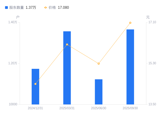 近一年(2024年9月30日至2025年9月30日),翰博高新A股股东户数从9834户,增加至1.37万户,增幅38.87%,区间股价上涨16.35%。