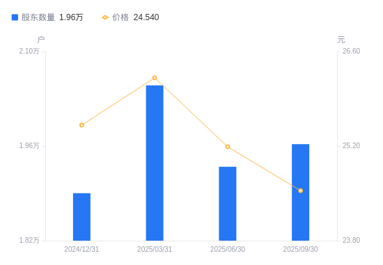 近一年(2024年9月30日至2025年9月30日),三利谱A股股东户数从2.26万户,减低至1.96万户,降幅13.12%,区间股价上涨16.97%。